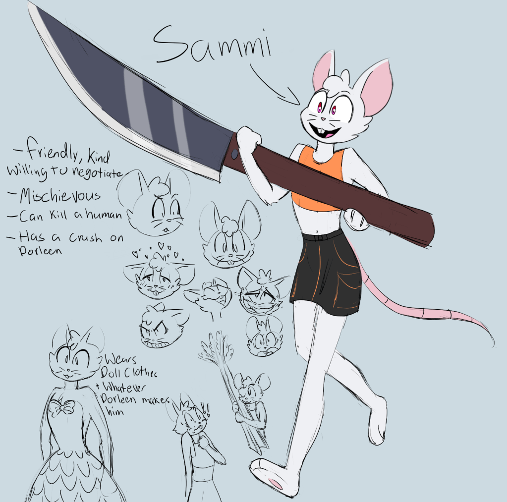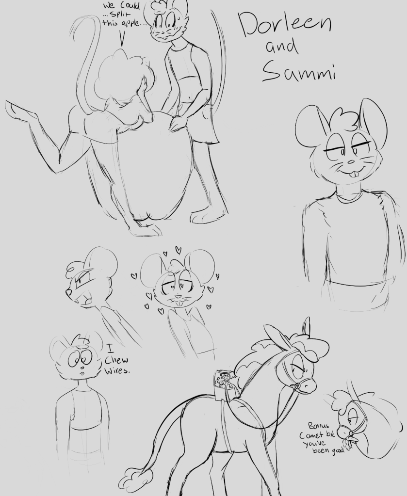 Just a series of doodles of a new OC I originally posted him on my old site. Still a WIP, but I had a scene of him in my comic. He’s still shipped with Dorleen. Also being a rat he wears doll clothes.