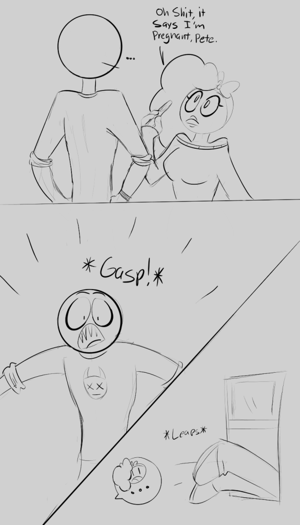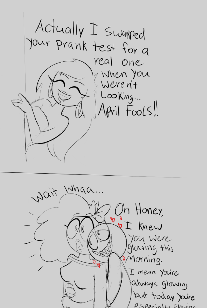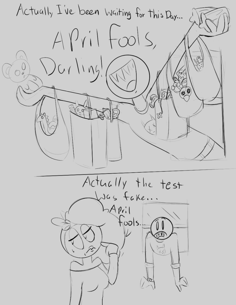 It was a little comic I did for April Fools back when I was more involved with the Your Boyfriend Fandom. I was almost going to make a fan kid for them but the creepy shit happening in the fandom was too much and I kinda stopped drawing them. This was around the time I started changing the symbol on his shirt to distinguish him from the canon design so you could see my emerging discomfort with being associated with this game. Maybe I’ll come back to this someday but right now idk.