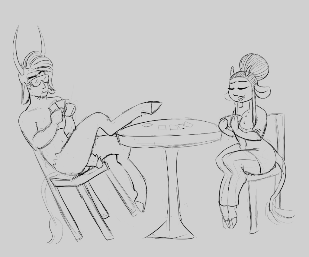This was a pretty old doodle of Hana and Graham. They’re supposed to be married but I don’t draw enough ship art of them tbh.
