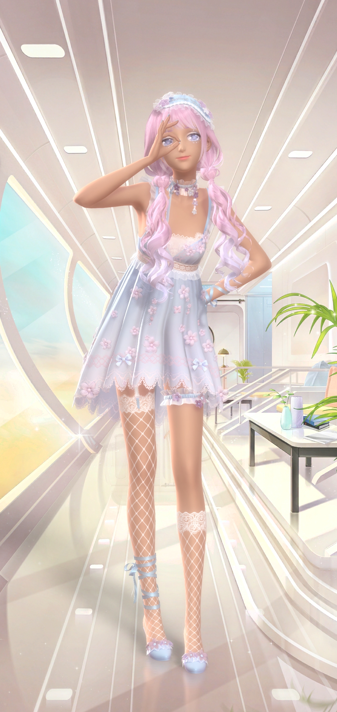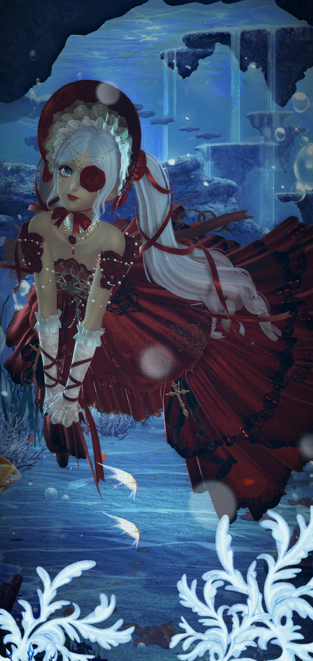 So on your left you’ll see Unfading Flower. Its a top up suit that looks like it takes aesthetic from generic well drawn art that would get popular on social media. I wasn’t a fan of the butterfly mouth thing on Winter Flicker, I’m not a fan of the rose eye here. Its nonsensical AND unfun.