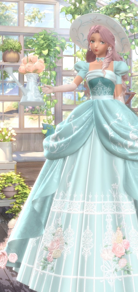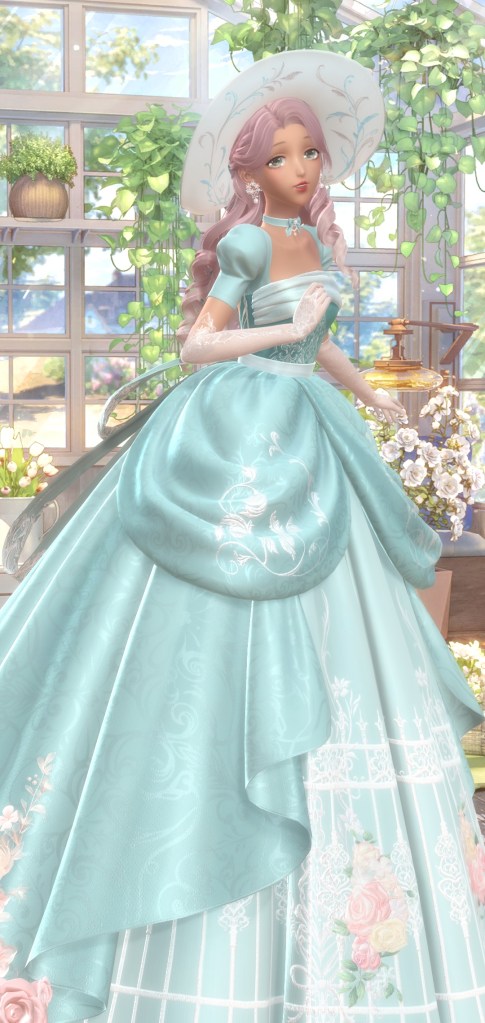 Now we have Morning Dewsong, a free suit from this season’s diamond arena. I actually cared enough to go for this one, the previous seasons didn’t do it for me. Windrest Woods, a suit that was free and UR. I really like the hair on this one. I’m not usually a fan of green hair, but I think they pulled it off here. It really helps that its not a solid color and it well blended. Also love the twist movement in the dress that feels more… tree/ growth-like. It could’ve just just been a plain gown but they went a little extra.