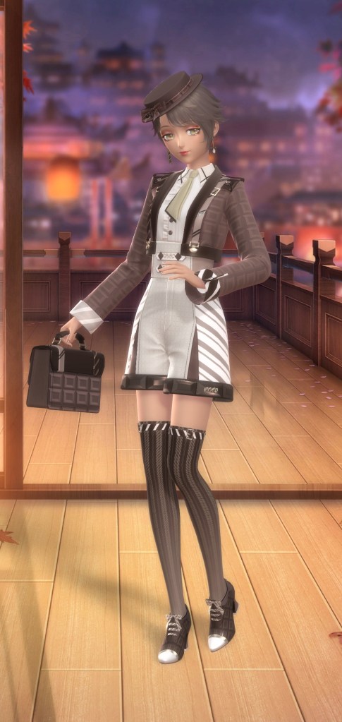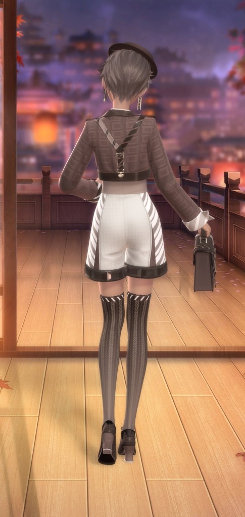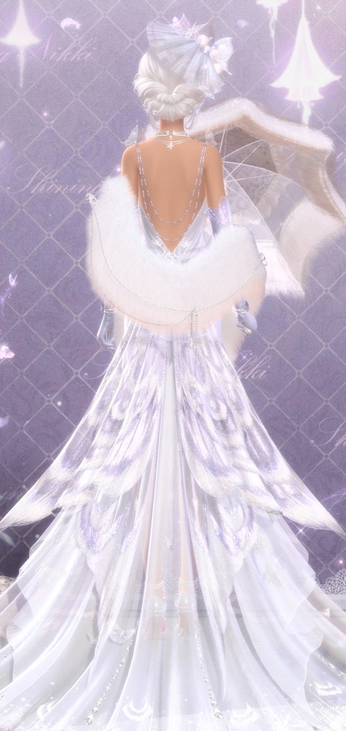 Now we have Dazzling Dusksnow. This was one of the suits you got during the big main event, so expect to spend some dias at the very least if you want this one. It is SSR rank so you if you saved up a a few thousand and take full advantage of the free tries you might not maybe hopefully not go broke. I know I would sometimes get two new pieces on a 10 pull. It reminds me a bit of a more mild Love Struck Moment without the Barbiecore.