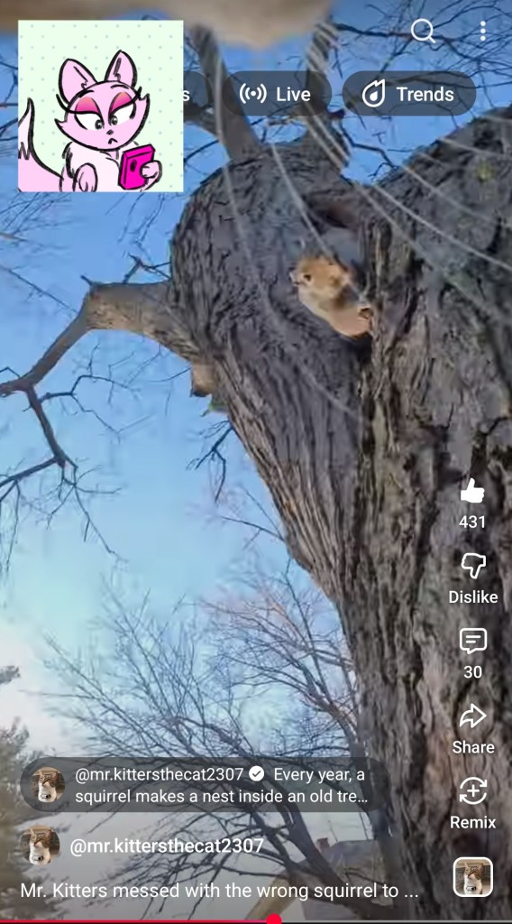 Cherri Cranberri (Nicknames: Cherri, Cranberri, or Cranny) is Comet’s adopted cat/ daughter. She is a mildly popular social media influencer and her audience is mostly other cats. She mostly uploads vlog, trends and drama vids with the occasional makeup tutorial. Cranberri only speaks and writes in cat, but can understand english. Shes always streaming/ recording/ taking pictures/ posting something to keep up with the grind and make some extra Money. Money she uses to go to the salon to keep up with the current style so that she can keep making money to go to the salon.