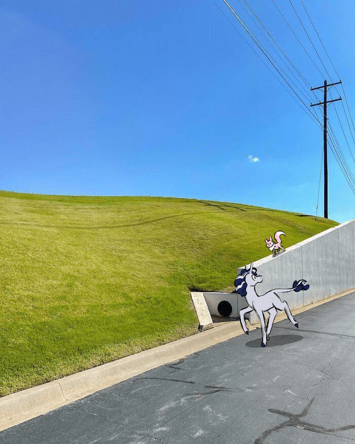 Welcome the weird liminal space doodle page! I used to collect random liminal space pictures from the internet and doodle Comet and Cranberri over it. It was to curb my art block at first but then it became the project after a while.
